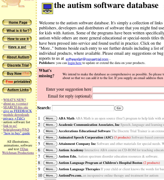 The MouseTrial web site is one of the top-ranking resources for autism,