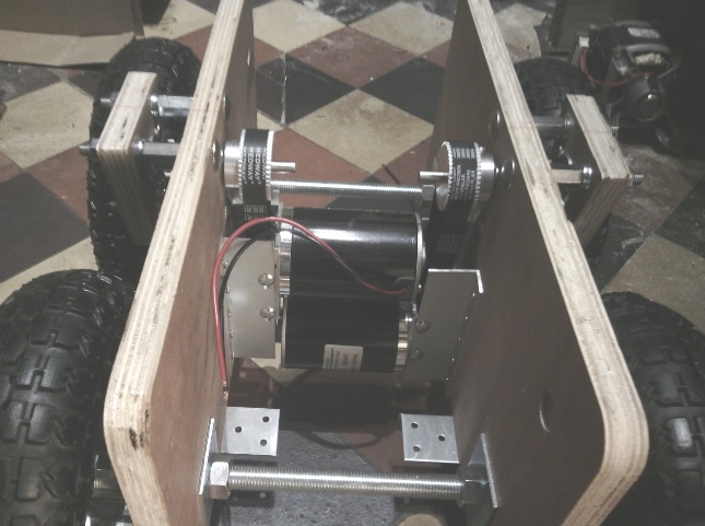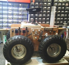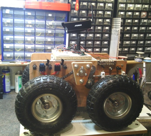 Below are a few photos of current projects. The large "robot base" is powered by two 24v scooter motors.